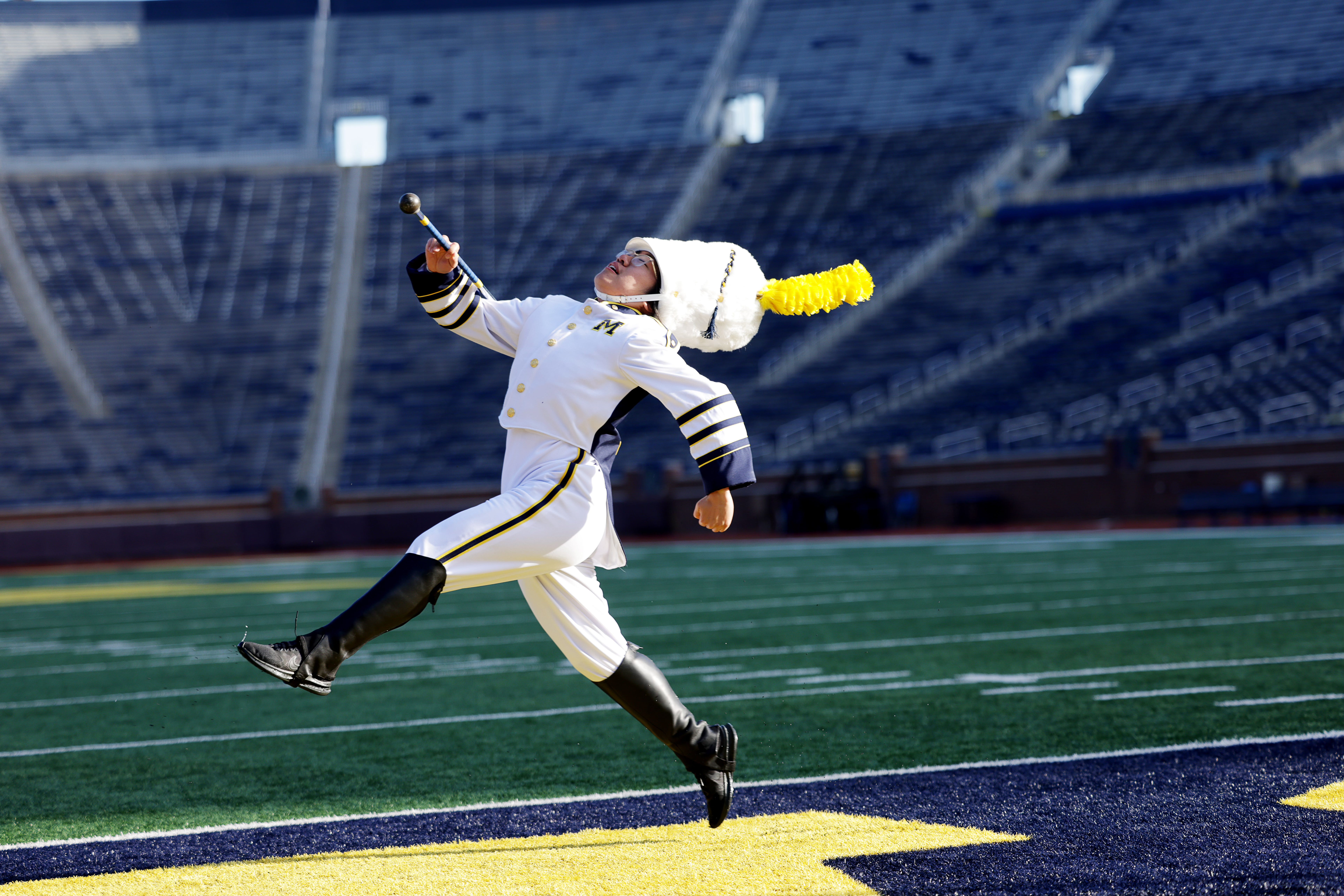 And I did. At the start of a halftime show, I would kick my legs straight ahead, lean far back and bound ahead of the band from the goal line, brandishing a big baton. To turn left, I would first flip to the right in order to make a showy 270-degree turn. I could whip the baton around from my waist to above my head, and when I directed the band, my beats were exaggerated and stylized. Every move I made was fashioned to draw notice.